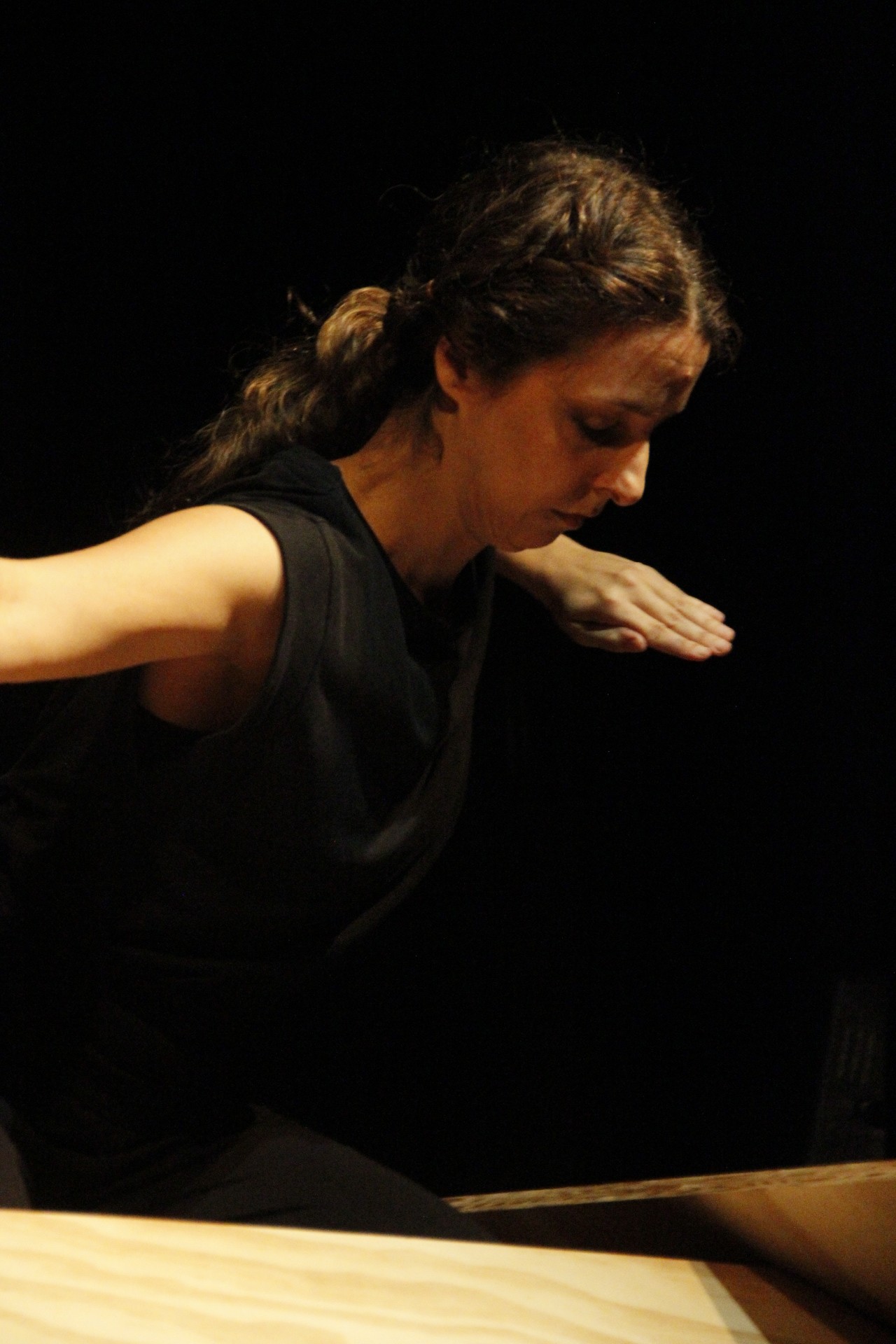 Durante o trabalho, que tem duração de 40 min., a bailarina vai compondo instantaneamente tensões e torções, onde imagens- sensações, vão sugerindo em nosso imaginário, figuras híbridas, entre o real e o mítico, que instauram uma experiência de sensações que passam pelo encantamento ao incômodo. Após o término da apresentação, vai ter um bate-papo do publico com a direção e a bailarina, para fomentar discussões sobre o trabalho em si, assim como sobre processos de criação em dança, realizado por mulheres.