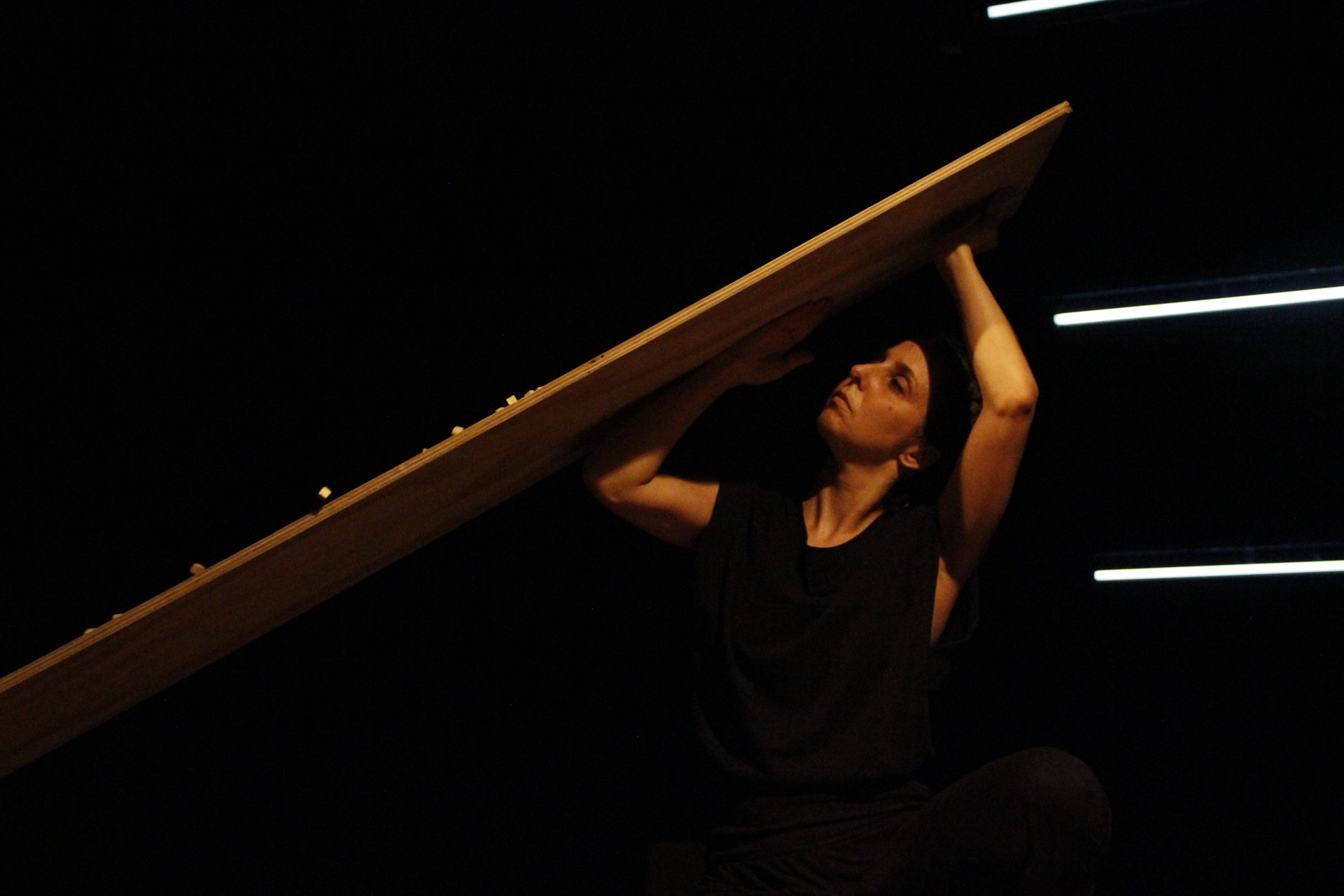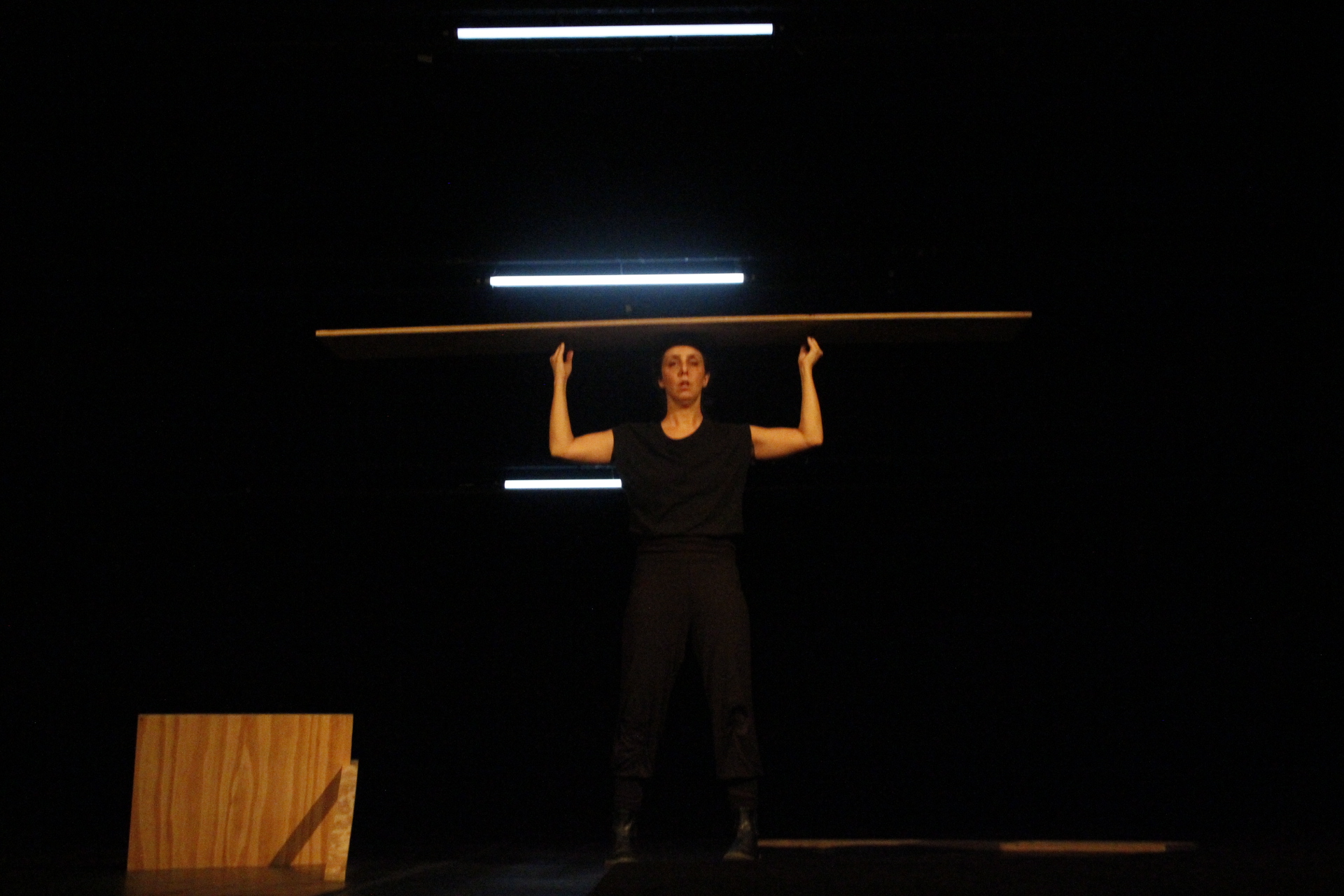 Lugar Provisório é uma tentativa de ocupar um lugar vazio para criar em dança. É um acontecimento, uma experiência para deixar emergir relações não- hierárquicas entre corpo, coisas e lugares, onde relações de alteridade se fazem e se desfazem. Esse trabalho teve início durante a quarentena da covid-19, em 2021, onde eu, meu filho e placas de compensados, vivenciamos um devir de empilhar, empurrar e equilibrar esse material. Em princípio era um ritual diário, um livre brincar.